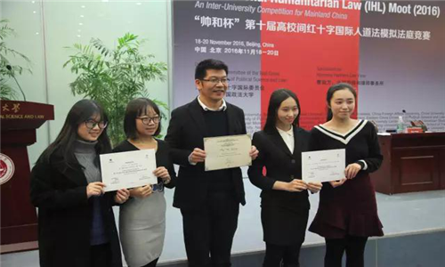代表队获得前三名,根据赛事规定获得前三名的队伍将由红十字国际委员会资助于2017年前往香港,参加第十五届亚太地区高校间红十字国际人道法模拟法庭竞赛。