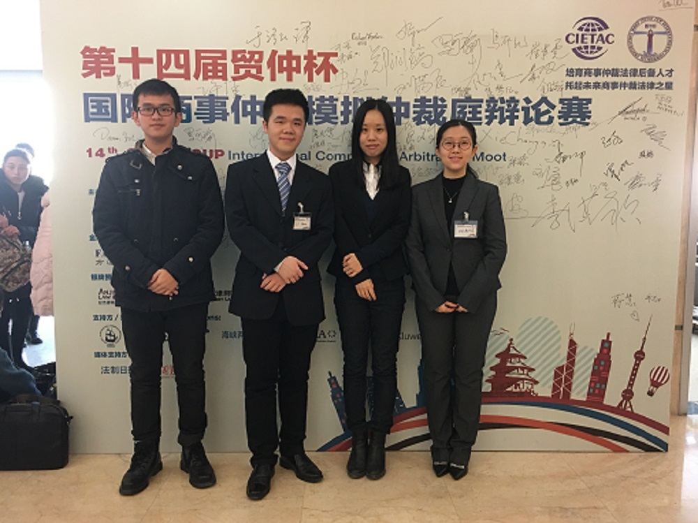 2016年11月21日至25日,第十四届“贸仲杯”(CIETACCUP)国际商事仲裁模拟仲裁庭辩论赛暨WILLEMC.VIS MOOT国内赛(英文)在京举办,共有来自全国的46支高校代表队参加。我校代表队在众多强队的角逐中脱颖而出,荣获二等奖,两名上场队员均获最佳辩手奖,分别是李翰(刑事司法学院2013级本科生)、史沐慧(法学院2013级本科生)。其中,按照比赛规则,李翰同学终获突出贡献奖。