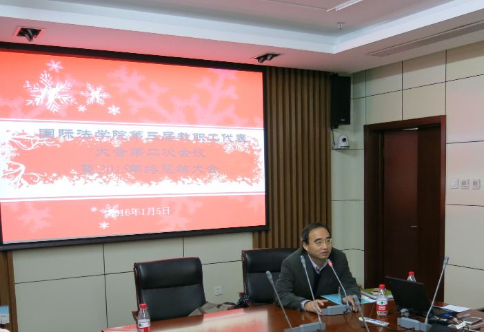 各项工作在过去一年中取得了长足发展,这些成绩的取得离不开全体教职员工的辛勤工作,他对大家的付出表示感谢。同时,黄进校长也提出,面对国内外法学各领域的飞速发展,我校的国际法学科也面临着难得的机遇和挑战,希望大家能够认清形势,抓住机遇,为推动我校的国际法学科的发展而继续努力,争取在新的一年里取得更大成绩。