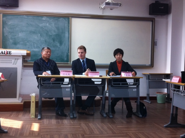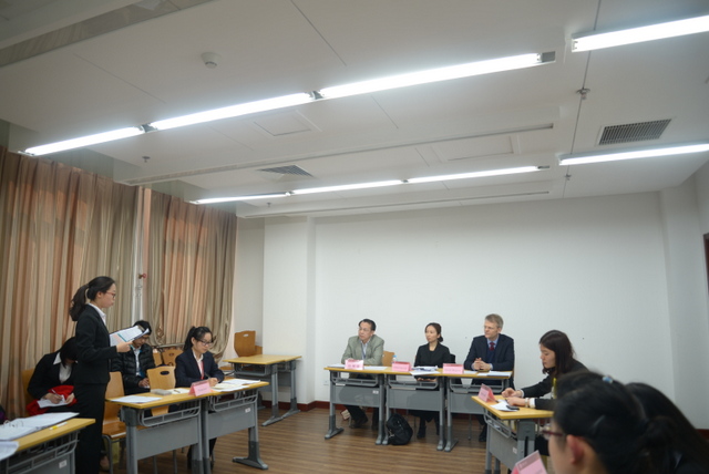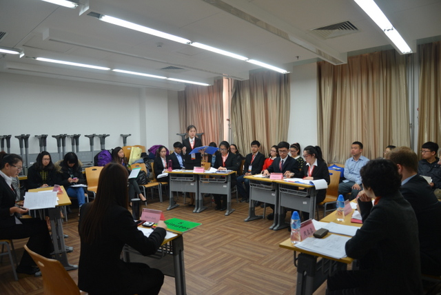 比赛首日共进行了4个场次的8场比赛。庄严肃静的法庭上,在有限的时间内,选手们冷静沉着,以清晰的思路、缜密的逻辑,用英语流利的陈述己方观点,并对对方提出的观点予以激烈反驳。面对法官的提问,选手们以对专业的水准有理有节的予以了回答。