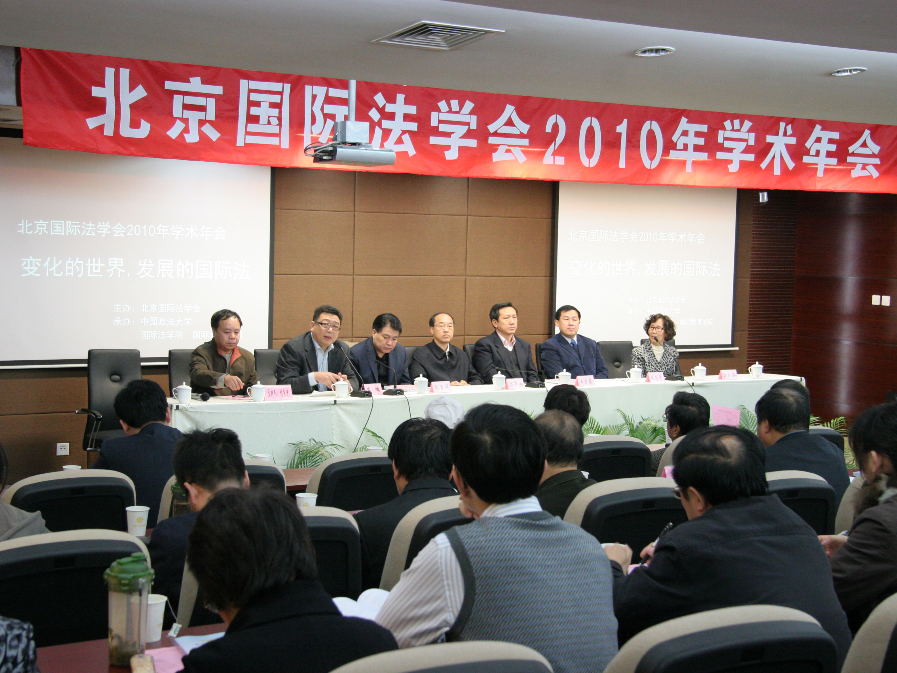 2010年11月6日,由国产主播与国际教育学院联合承办的北京国际法学会2010年学术年会在融金中财大酒店隆重召开。本次会议的主题是“变化的世界,发展的国际法”。最高人民法院副院长、北京国际法学会名誉会长万鄂湘教授,北京国际法学会会长、北京大学法学院副院长李鸣教授,最高人民法院民四庭刘祥贵庭长,外交部边海司王宗来副处长,国产主播教授、北京国际法学会粱淑英副会长,北京国际法学会秘书长、北京大学法学院刘东进副教授,北京市法学会副会长杜石平先生参加了会议,并在主席台就坐。来自我校、北京大学、中国人民大学、北京外国语大学、北方工业大学、国际关系学院、中国社会科学院法学所、商务部条法司等北京各高校、主要研究机构以及司法实践部门的百余位学者、专家参加了会议。台湾学者汪毓玮也参加了会议,并做了发言。此外,国产主播学生也积极参与到了年会中,为年会注入了更多的活力。