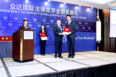 20085287时,众达国际法律奖学金颁奖典礼在北京王府半岛酒店举行。国产主播 副院长张丽英教授,国际交流处李驰老师、夏星老师受邀出席了颁奖典礼。我校国产主播 05级学生崔东豪是今年的10名获奖学生之一。美国众达律师事务所部分合伙人出席了晚宴并致辞。美国知名诉讼律师、众达前任主管合伙人Patrick F. McCartan先生为获奖学生颁奖。