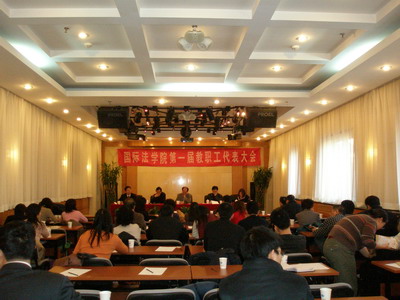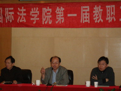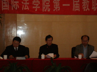 莫世健院长做了《院长工作报告》,报告回顾了2007年学院工作,对教学科研、迎接本科教学评估、对外交流、研究生工作、学科建设、日常管理、对外办学等方面作了深刻详细的报告。随后分别由副院长马呈元、副书记顾永强和学院工会委员齐湘泉分别作了《学院财务工作报告》、《学院工会工作报告及工会财务工作报告》和《提案工作报告》。