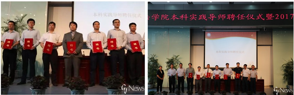 本科生实践导师的聘任决定。聘任乔嘉、姜毅、戴智勇、闫海、许汉生、刘泽枫、黄丹、周礼光、王聪、杨智勇、杨洋、冯蕊 、刘宇翔、张虎生等十四位同志为本科生实践导师,并为他们颁发了聘书。