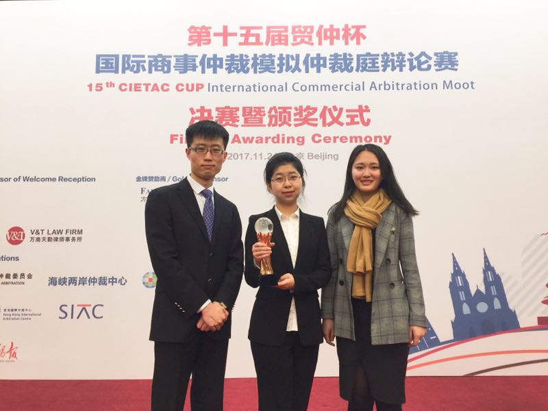 “贸仲杯”是中国国际经济贸易仲裁委员会(以下简称“贸仲委”)组织的、面向全国法学院校的仲裁法律专业年度竞赛。比赛全程以英文进行,由贸仲委资深仲裁员、国内外知名律师等专业人士组成模拟仲裁庭,参赛选手模拟仲裁案件中申请人和被申请人的角色参与仲裁庭开庭审理的各环节。在比赛中,双方根据模拟的案情进行陈述、答辩和辩论,对于提高国际商事法律实践水平、提升学生实战能力大有裨益。我校代表队将在2018年3月赴奥地利维也纳参加第二十五届WILLEM C. VIS模拟国际商事仲裁辩论赛。