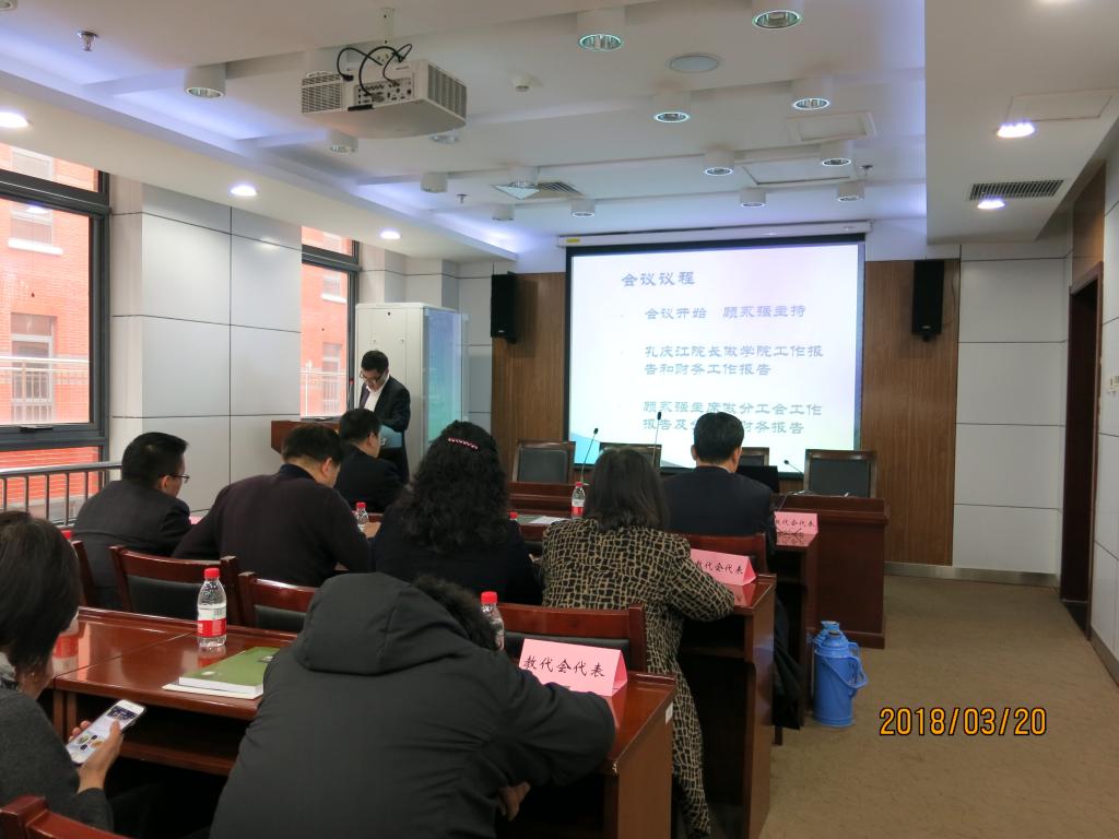 在学院路校区召开第三届教职工代表大会第四次会议暨2017年度教职工年终总结大会。大会由顾永强书记主持。