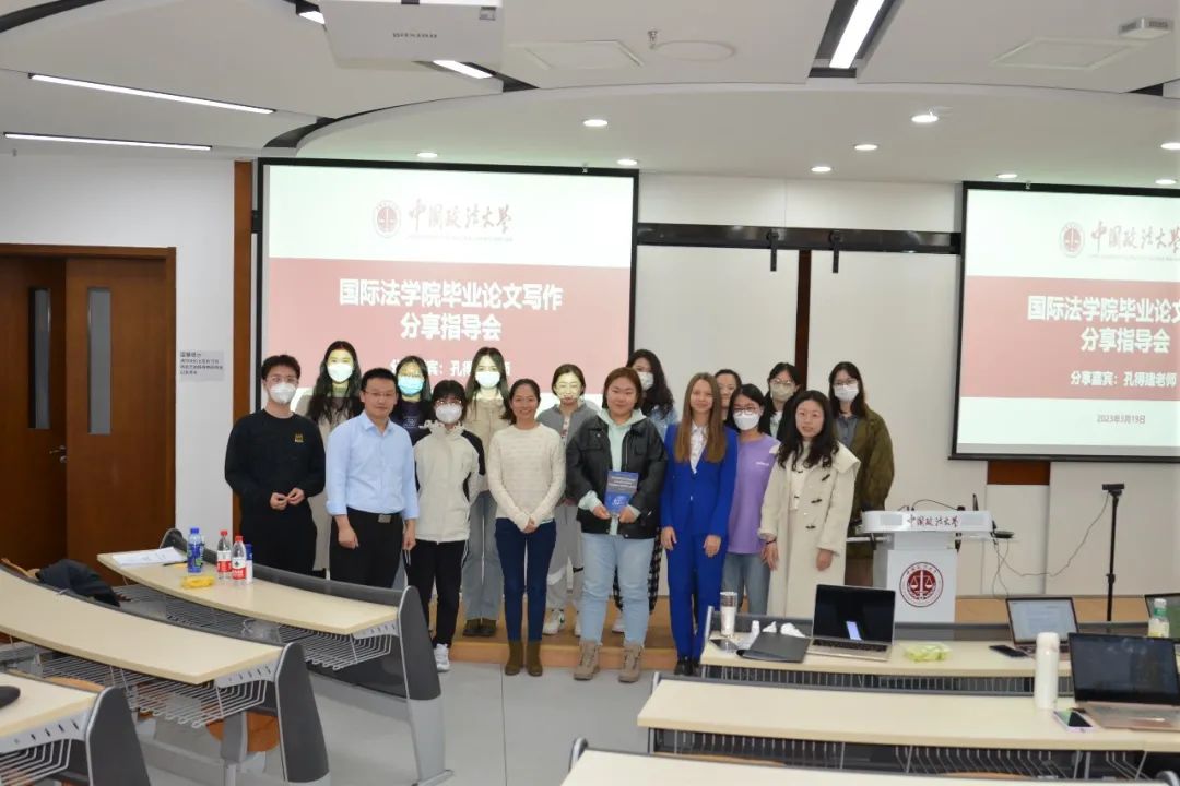 最后,孔老师和大家合影留念,热情的同学们在门口围绕着孔老师,继续轮流继续向老师请教自己的论文写作困惑,记录老师推荐阅读的针对性书名。通过这次毕业论文写作指导活动,大家都带着问题而来,带着写作信心和技巧满载而归,本次活动圆满结束!