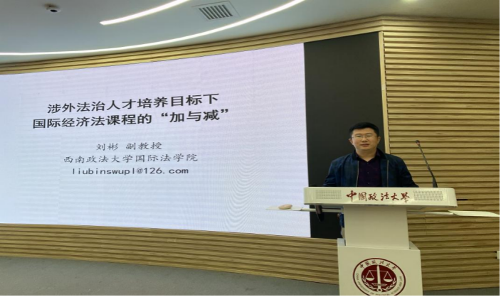 在活动的下半场,刘彬老师对涉外法治人才培养目标下国际经济法课程的教学改革提出了建议。刘彬老师指出现行培养模式下国际经济法课程的教学困境,提出教学课时明显不足,与庞大教学体系并不相称,以及教学重点分布不均、教学方法相对单一等问题。针对这些困境,刘彬老师进一步建议:未来国经教学应压缩“非国际”内容,聚焦于那些具有浓厚涉外因素、只有在国际化交易语境下才会产生的独特法律问题,如CISG的适用条件、适用范围等;同时,应合理回避与其他国际法课程的重叠部分,更加突出国经课程的全球化思维,实现“当增则增,当减则减”。