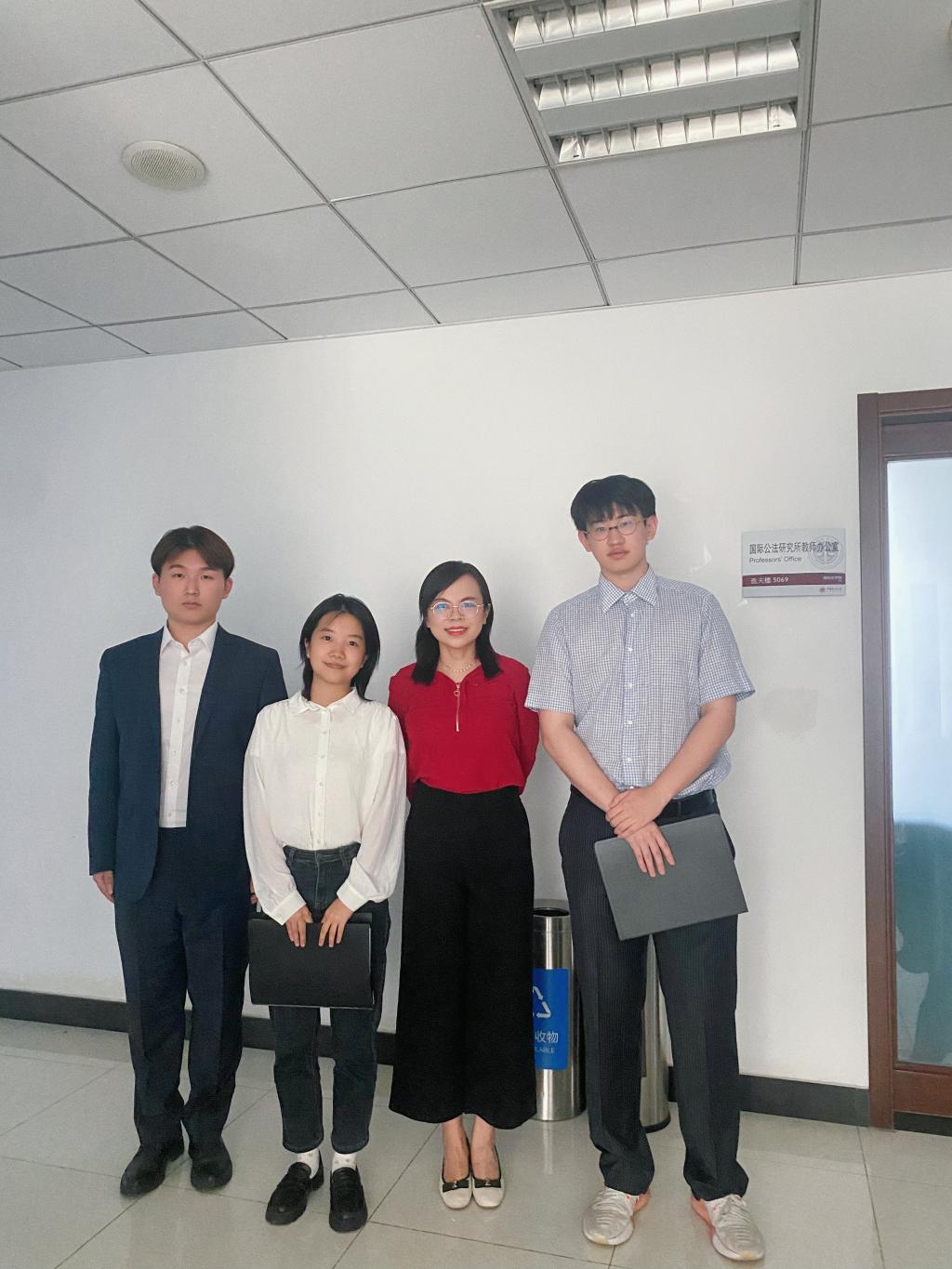 本科生鲍汉栋、卓琳凌组成,在教练唐雅老师和教练助手阮浩洋、巫雅婷、史思圆、程昱鹏、陈筱蓉、马昕彧的指导下,讨论了反卫星导弹使用、外层空间激光活动、空间态势感知、外空军事化等空间法前沿问题,先后于国内赛、亚太赛取得亚军、冠军。唐雅老师以其丰富的模拟法庭指导经验和渊博的专业知识,悉心指导队员,使得队员们能够发挥各自优势,在取得优异比赛成绩的同时扩展了专业知识,提升了法律研究能力。