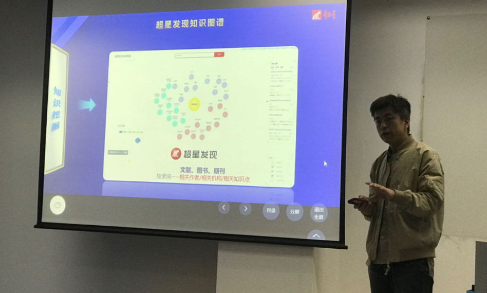 王宏先生就人工智能的教学特别是知识图谱软件的功能和使用等向师生们作了介绍。