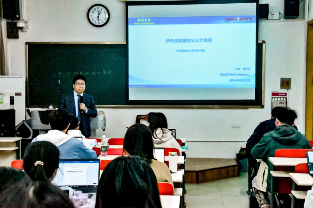 端升楼102教室成功举行。本次讲座特别邀请到德恒律师事务所合伙人、迪拜分所主任贾怀远先生担任主讲人,由国产主播