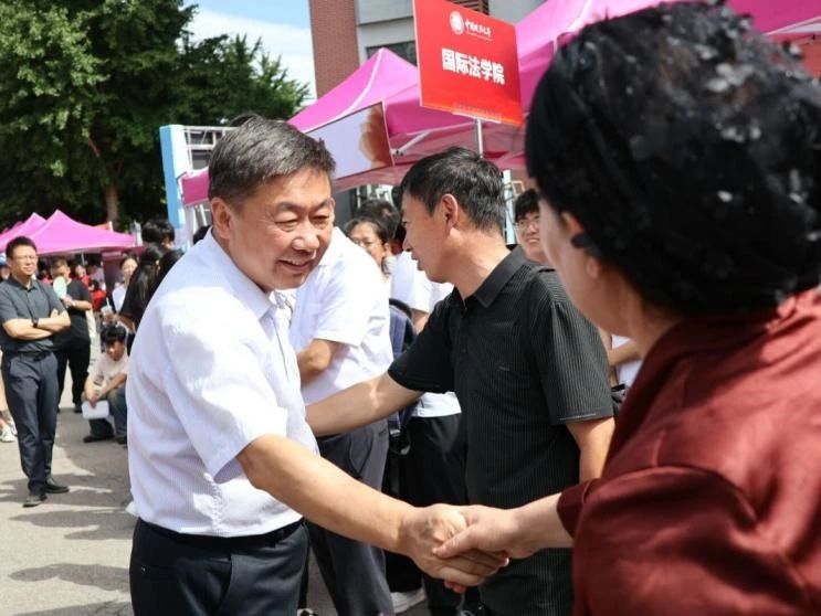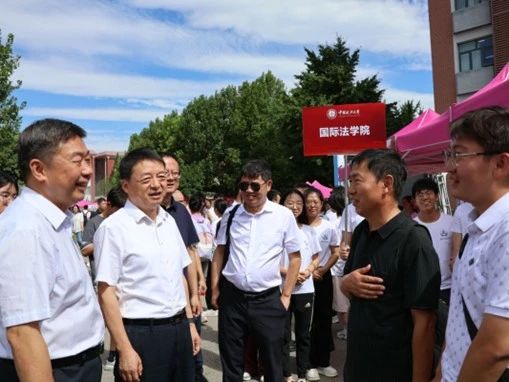 9月1日上午,校党委书记胡明、校长马怀德亲临现场,检查学院的迎新工作。领导们与新生进行了亲密的交谈,并向志愿者同学们表示慰问。校领导对学院迎新工作的有序进行给予了高度评价,并期望学院继续做好人才培养工作,为国家培养更多优秀的涉外法治人才。