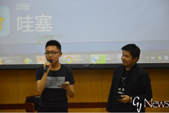 随后,缪杰老师为我们演唱了他新书的同名曲《午夜夕阳》,词曲如同书名一般孤独,同学们在享受音乐的同时,也积极地在微信平台上与缪杰老师进行互动。在互动过程中,缪杰老师抽中一名幸运观众并和他一起合唱新歌《唯你一生》。在后面的提问环节,对于三名观众的提问,缪杰老师都一一诙谐幽默地进行了回答。与此同时,这几名观众也幸运地获得了缪杰老师亲笔签名的CD唱片。