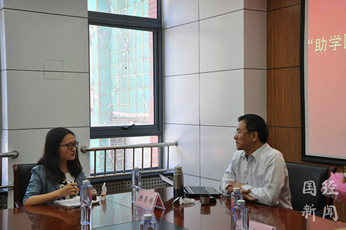 图二:陈教授与受助同学进行亲切交谈