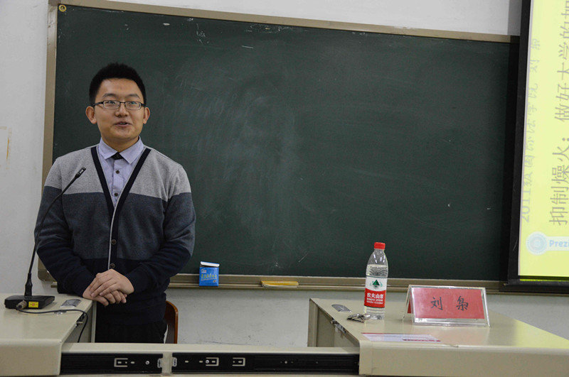 刘枭同学学习成绩优异,已保送至我校中欧法学院经济法专业继续攻读硕士研究生,他热情地将自己的学习经验分享给到场的师弟师妹们,为同学们如何规划自己的未来生活提出合理的建议。本来是针对大一同学举办的交流会也吸引了不少大二大三同学的参加,本场交流会的主题也就分成了三个不同的部分:大一的迷茫,大二的浮躁,大三的迷失。主体不同,初衷一样,传递经验,指导人生。作为初入校园的新人,大一同学难免会有找不准方向的迷茫,复习抓不住重点,选课不了解流程,刘枭也准确把握了大一同学的症结点,对症下药。谈到期末复习,他着重强调了主次分明,合理分配时间与精力的重要性,一定要根据具体科目的课程性质有序制定复习计划,在法学这个需要大量记忆的专业,对于书本知识的熟悉的重要性自然是不言而喻的,他强调同学们一定要形成自己的课程框架体系,科学记忆,就一定能够取得不错的复习效果。讲完了期末复习,刘枭又谈到了另一个大一同学很关心的问题---————选课。针对同学们不了解选课流程的问题,刘枭仔细讲解了选课的三个步骤:预选、正选与补选,为了能让自己拥有一个完美课表,刘枭强调了提前做选课规划的重要性,一定要做好选课预案,紧急处理特殊情况,保证自己不掉课的同时,为自己争取最好的课程安排。考虑到现场还有很大一部分大二大三的同学,刘枭也谈到了他们需要注意的问题,大二大三都有了自己的一套生活与学习模式,但也普遍存在浮躁与迷失的问题,这主要是关于社团与学习关系的处理问题,首先刘枭肯定了社团对于同学们成长成才的重要作用,我们需要珍惜自己在社团结交到的朋友,铭记这段美好时光,但我们也必须学会合理安排自己的时间,一定不要只是盲目地游走于各个社团之间,随时随刻不能落下我们的学习,毕竟学习才是最重要的。最后,刘枭谈到了保研与司考的问题,鼓励同学们坚持一份耕耘一份收获。时间飞逝,交流会很快就接近了尾声,见大家意犹未尽,随和的刘枭示意现场同学可以积极提问,交流会进入了现场互动的环节,同学们也都是兴致勃勃,抛出了各种各样的问题,刘枭都一一进行了解答。最后,刘枭借用了纪伯伦的诗《我的心曾悲伤七次》,用以勉励所有在场同学,在如此美好的青春年华,我们理应积极进取,搏击人生蓝天,收拾好大学四年的每分每秒,不让自己的大学时光虚度。至此,交流大会圆满结束。