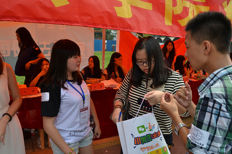学生会,学委会和国产主播的三大学生组织和来自2013级各班的迎新志愿者一起组成迎新队伍,为2014级新生提供全面、贴心的迎新服务。