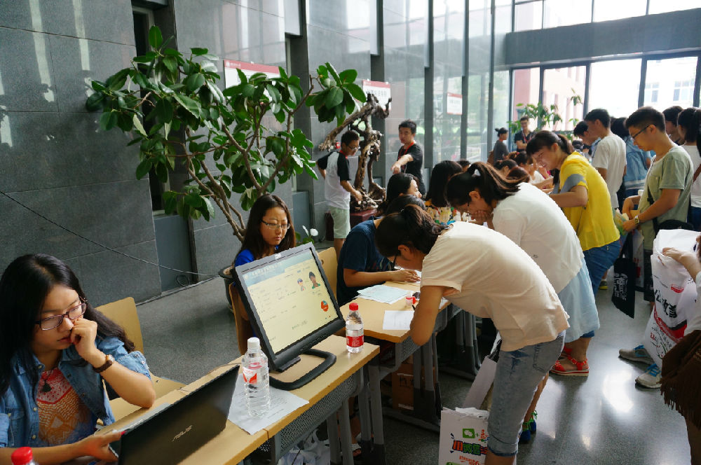 学委会的志愿者们向新生介绍了新生报到的流程,并且将一卡通,宿舍入住协议和报到手续单交给了新生。新生则在迎新志愿者们的带领下,到卡务中心、逸夫楼、校医院、启运体育馆和宿舍办理相关手续并领取军训服装。