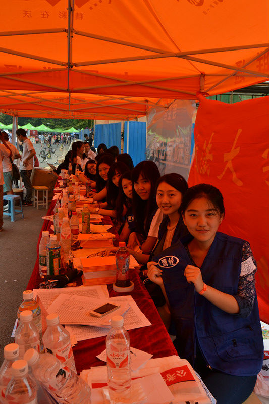 2013级各班的迎新志愿者们。随着新生陆续到来,志愿者们分工明确,各司其职,耐心、热情地开展迎新工作。每当校车开进校门时,志愿者们便高举“国产主播