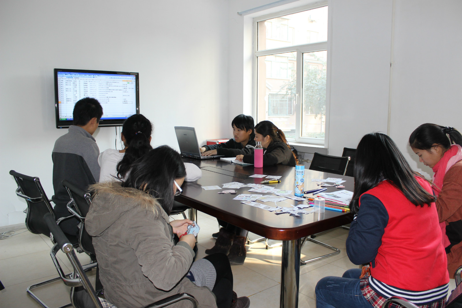 五彩路活动的志愿者们在这里的主要志愿工作是输入资料和整理教案,工作虽然或许繁琐平凡,但却能代表同学们对孤独症儿童的关爱和对志愿活动的支持。输入资料的志愿者们都在认真地辨认登记表上的字迹,一字一字地输入电脑资料库,反复校对。整理教案的志愿者们则在为日后康复训练需要的图片上色和剪裁,一张张稚嫩的图画背后仿佛浮现了孩子们的笑脸。工作中途,五彩鹿中心的教师还带领了两位志愿者去和小朋友们做游戏。出于为在五彩鹿中心接受康复训练的儿童及其家长考虑等因素,志愿者们并不能过多的接触那些小朋友们,所以我们只能用这种幕后工作的方式默默地奉献自己的一份力量和关爱,关爱自闭症儿童。