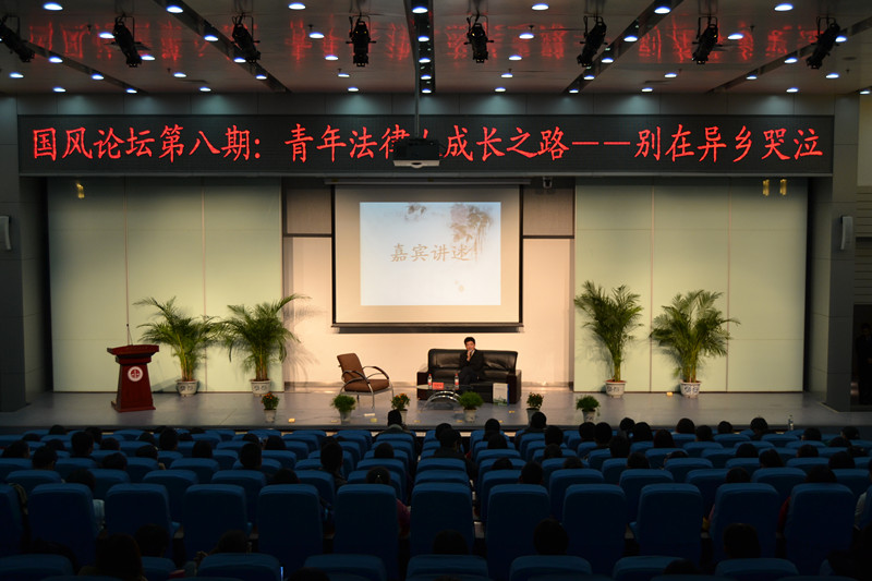 2013年11月11日第八期国风论坛:青年法律人成长之路——“别在异乡哭泣”于逸夫楼刘皇发学术报告厅举行。国风论坛系列讲座由国产主播