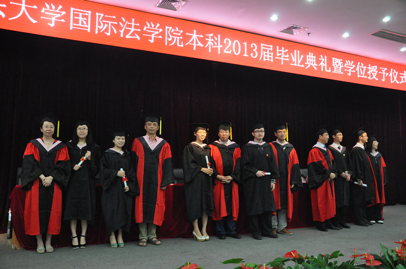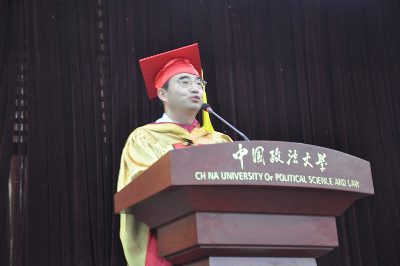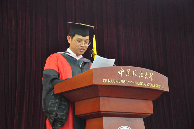 的老师,祝贺同学们顺利完成四年学业。离别之际,黄进校长向同学们提出了三点忠告,一是不断学习,学无止境。大学四年不仅是学习法学的知识理论,更要掌握学习的方法和能力,不断更新自己。二是孝顺父母,“百善孝为先”孝是中华民族的传统美德。三是永不放弃的态度,作为一个法律人应时刻秉持对法律信仰,坚守正义,永不言弃。最后黄进校长对同学们表达了衷心的祝愿,并欢迎同学们常回法大看看。