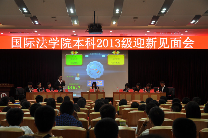 新生的欢迎,并根据自己的亲身经历对新生们崭新的大学生活提出了一些建议。2013级新生代表姚尧代表新生发言,充满激情地展望了她的四年法大梦和法治理想。