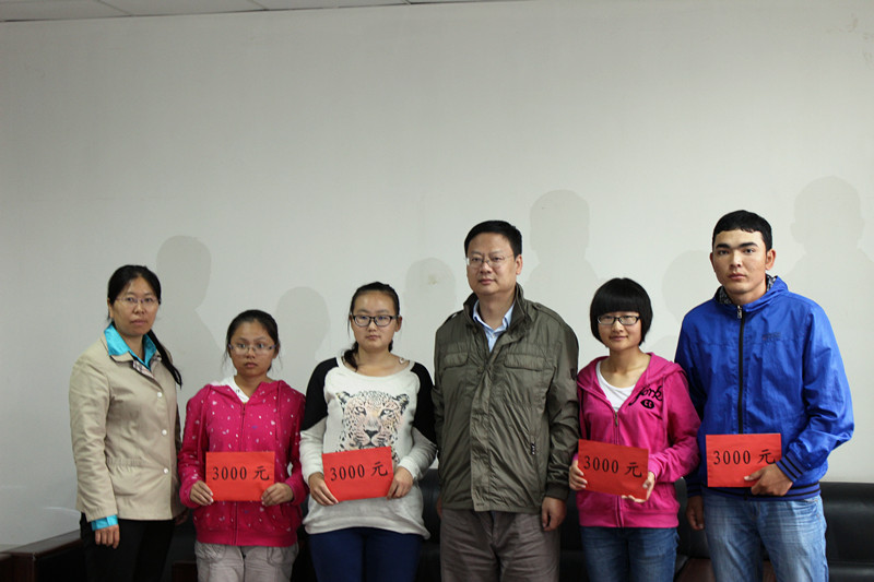 分党委副书记兼副院长顾永强老师,分团委兼2013级辅导员杨俊丽老师,以及获得奖学金的四位13级新生参加了本次颁奖仪式。