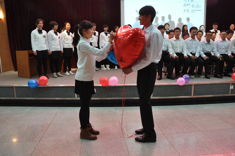 紧接着是二班同学的《那些年》,一首流行曲目在他们的歌声演绎中略去了浮华的味道,却使那点点滴滴对青春的回忆和悔恨逐渐地在听众心中翻涌起来,更为一绝的是二班同学婉转动人的双吉他伴奏,还有那再现电影的“那些年”场景表演:一起背书,打扫把耍闹,赌气拌嘴……这一切的一切,仿佛同学们带回了那如梦如幻的青春岁月。