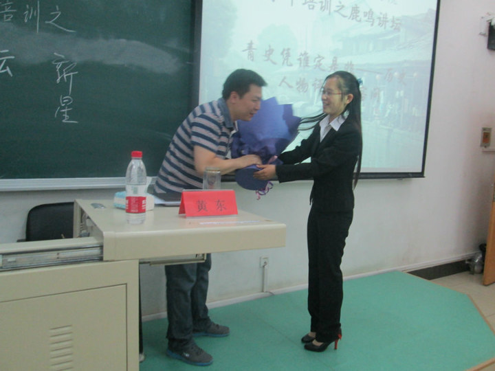 讲座最后,主办方为黄东老师献上鲜花,黄东老师除表示感谢外还表示愿意经常与同学们交流历史观点,以求共同进步。