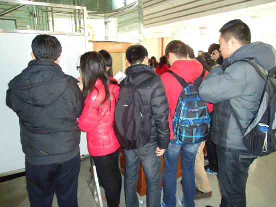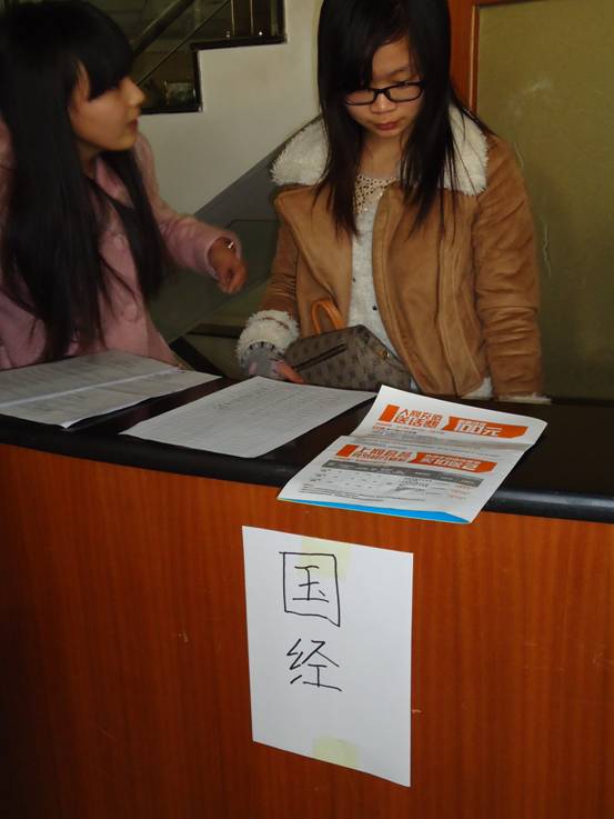 走近活动报名处,醒目的海报上详细的注明了献血的具体事项。左侧的环形吧台,依次有各个院的负责同学给前来报名的同学发放报名表,做指导。同学们依次排队报名,认真填写表格,秩序井然。