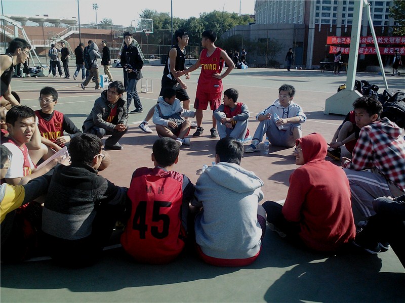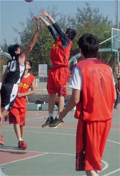 北京时间2012年10月30日星期二中午,“乾元杯”篮球赛国经VS民商的比赛在学校篮球场打响。虽然阳光明媚,但风力较大,气温较低,可能会影响球员的发挥,因此赛前双方球员都做了充分的准备运动。