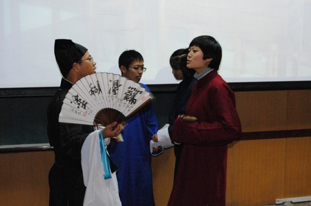 前学委会主任巩宸宇作为特邀嘉宾,并请到了前文艺部部长陈骋,现任文艺部部长杨景行,莽原话剧团团长张硕,中国石油大学话剧团团长冯北作为评委。 演出还未开始,场内已座无虚席。同学们热情洋溢,讨论着自己支持的班级。在场外,等待上场的演员们紧张而兴奋,为即将开始的演出作最后的准备。  大赛在主持人诙谐幽默的开场白和同学们的热烈期待中开始。实验班的同学首先上场,带来了一段《刺秦》的精彩演出。接下来上场的各班也各显神通,整场比赛笑声不断,同学们用自己的青春与活力展现出新一代大学生独特的风采。第三个上场的五班同学以各式各样的宿舍生活为题材,展现了一场充满奇思妙想的《宿舍呼叫转移》,获得同学们和评委们的一致认可,成为本次比赛的冠军。  本场比赛特别设有最佳人气奖,由场内同学短信投票选出自己心目中最喜爱的演员,这一荣誉最终由实验班的王会战同学获得。而亚军,季军最终分别花落一班、四班。  比赛最后环节是由特邀嘉宾为获奖班级颁奖,同学们呼喊着演员们的名字,展现出同学之间深厚的友谊和强烈的集体荣誉感。  本次大赛在一片欢声笑语中圆满结束,但同学们对学院活动的热情将永不停止,让我们期待下一届比赛的到来!