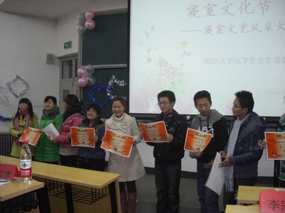 学生会文艺部长孙小悦、副部长邹文博,院合唱团团长刘思旻,09级新生演唱秀最佳人气奖得主高樱识,邀请到了嘉宾学生会副主席李冠颖和曹烨云。  首先,由生活部精心选取的各寝室生活照片做成的幻灯片拉开了本次寝室文化节的序幕。接下来,由选手们改编的《法大买卖》顿时活跃了现场气氛;法学院09级尚丽娟同学以诙谐的表演和一曲劲舞再次吸引了在场同学们的眼球;嘉宾们的表演,深情的诗朗诵,亲友团的助阵以及由国产主播