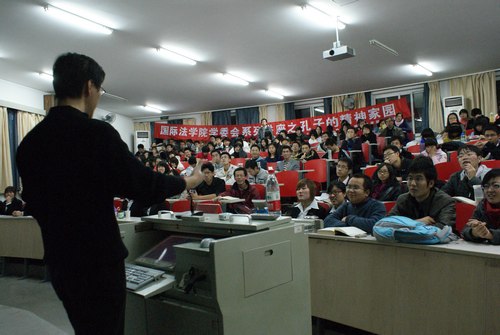 学委会监察部主办的孔子精神家园的讲座有幸请到了北京大学杨立华教授,本次讲座于第八阶梯教室举行,吸引了众多同学到场。  杨立华教授,现任为北京大学哲学系副教授。迄今已出版专著《匿名的拼接》,译著《宋代思想史论》、《章学诚的生平与思想》等三部,发表学术论文三十余篇,他开设的课程,无一不受到学生的好评。讲座一开始,杨教授就用他的风趣幽默活跃了现场气氛,增强了同学们对于孔子的兴趣。他用通俗易懂的语言将同学们带入孔子的精神世界:既有“有朋自远方来,不亦悦乎”的待客之道,又有“己所不欲,勿施于人”的处事之理,更有“登泰山而小天下”的雄心壮志。让同学们在精神上与圣人零距离接触,感受儒家文化的无穷魅力,品味中华文化的博大精深。  杨教授的演讲结束后,他又与同学们进行了互动环节。在互动过程中,同学们展现了对儒家文化的无限热爱,和对孔子精神的无穷敬仰。  读孔子,可以得到温暖与柔和中得到刚强的力量,找到纷繁复杂中找到前行的方向。杨教授的这次讲座,让在场的同学们对孔子这位至圣先师的精神世界有了更深入的了解,对中华传统文化有了更浓厚的兴趣,让孔子的精神也将指引着我们,激励着我们向未来勇敢进发!