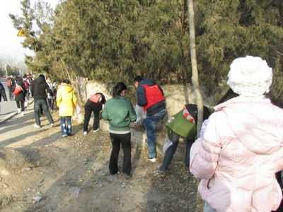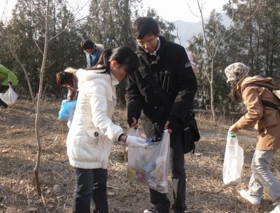 出发,步行一小时来到十三陵水库。在十三陵水库的环保活动中,同学们沿着水库边的马路前行,一路拣拾游人丢弃的废纸,烟头,塑料袋等垃圾,不怕苦,不喊累,清晨的低温也抵挡不住同学们对环保的热情,充分发扬了当代大学生吃苦耐劳的精神。当同学们看到经过大家努力而恢复洁净的马路时,心里充满了喜悦之情和成就感。  此次活动增进了同学们对环保事业的了解,也体现了当代大学生作为“挺立的新一代”的社会责任感,提升了大学生对于个人价值的认识。