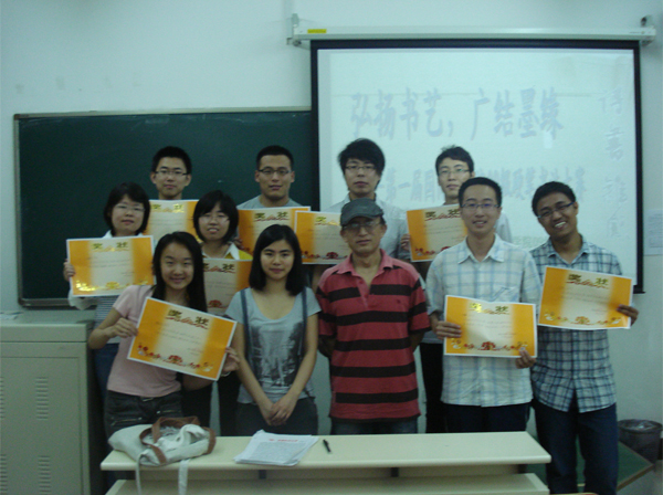 人文学院艺术教研室祁志锐教授、宜字林书法社社长杨学清师姐作为嘉宾评委。  在同学们聚精会神地完成了作品后,祁志锐老师就同学们的书法作品中的优点与不足做了精彩的点评,给出了指导意见,并向我们讲述了练习书法、掌握好书法技能的重要性。此外,祁老师还通过实例生动形象地讲解了书法的艺术。同学们聚精会神地听讲,并做了交流。杨学清师姐为获奖同学颁奖。  值得一提的是,此次活动有所创新,增添了一些亮点。首先,在同学们完成书写作品时配上了古筝曲,营造了舒心恬静的氛围。其次,评委评分时,为现场选手展示了历代书法大家作品的照片和简介。在大家等待评分结果的时间里,团总支还特意为同学们设计了游戏环节。游戏中,大家增进了友谊,现场气氛活跃。  最终,10名同学从30余名参赛选手中脱颖而出。其中,0905班马晶晶同学摘得桂冠,万黎、江雅雯获得二等奖,范彧、都基旭、李振洋获得三等奖,陈开元、马克、陈真、孙春凤获得优胜奖。  活动最后,获奖同学和到场嘉宾合影留念,本次活动圆满结束。  国产主播