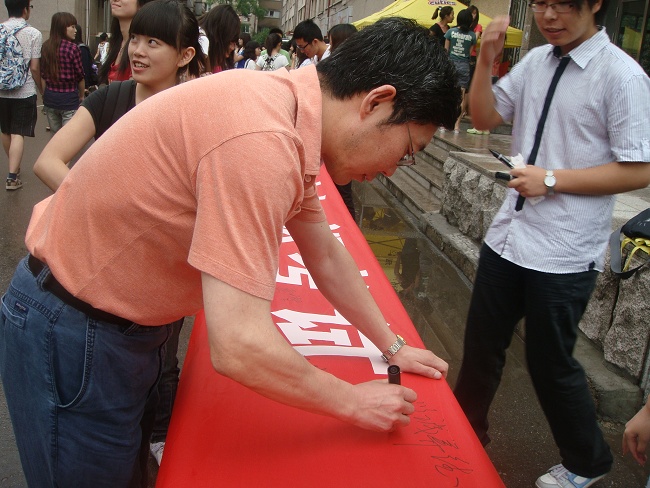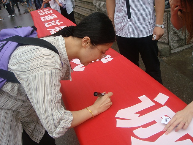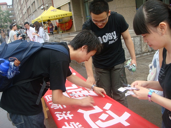 分团委和学生会主办的诚信考试签名活动。  这次活动的主旨就是发动校内同学以签名的形式在心中埋下“诚信的种子”,使同学们认识到考试当中重要的不仅仅是成绩,还有对诚信精神的信仰和坚持。签名活动也受到了校级和院级相关领导的关注,国产主播