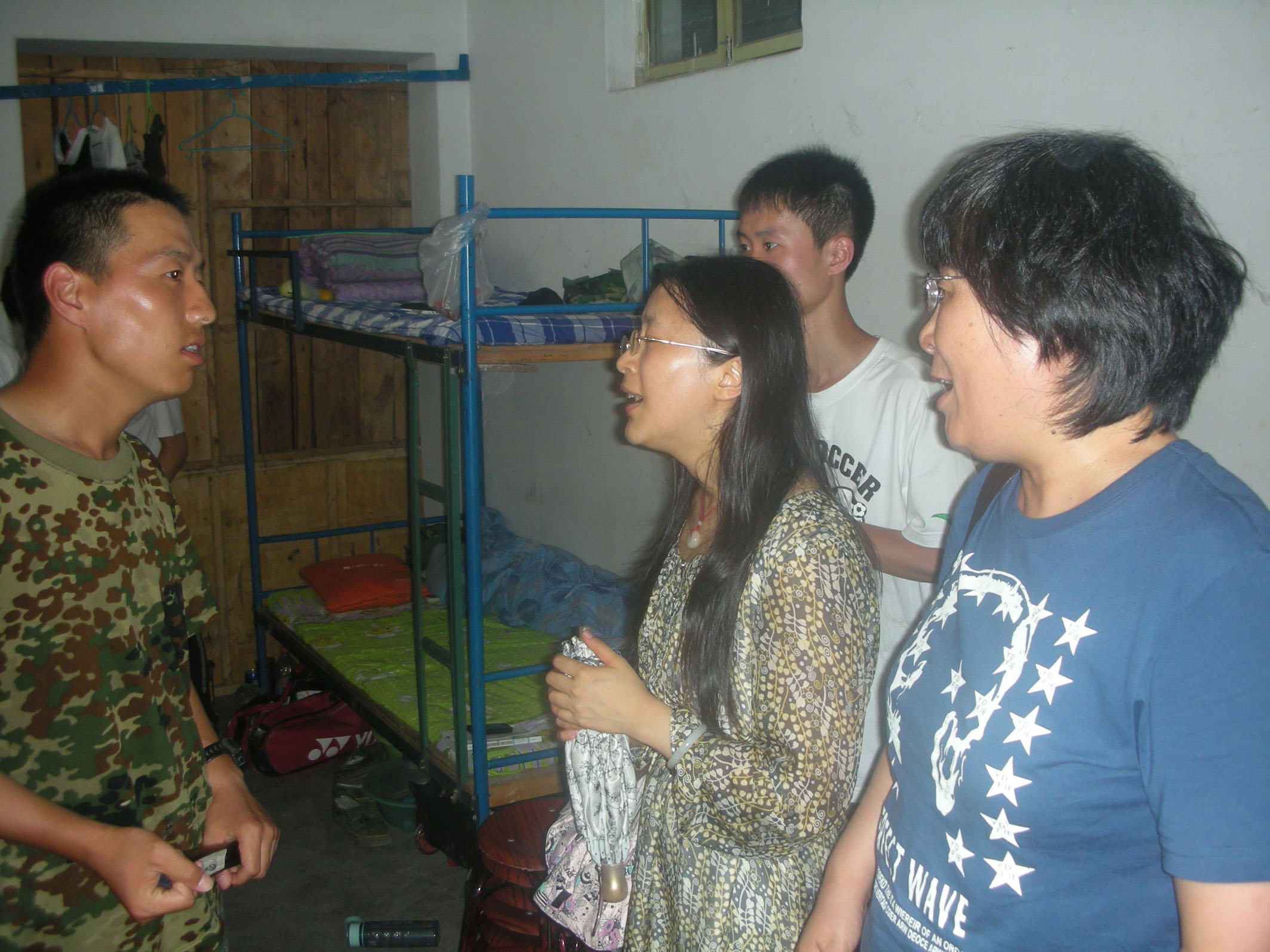 09级同学。  正值七月的八达岭早晚温差较大,考虑到当地多变的气候状况较为艰苦的训练条件,慰问队伍给参训的09级同学带去了各种新鲜水果、红糖、酸梅精、葡萄糖和蜂蜜,用于补充体能和营养。在训练间隙,分党委书记杜新丽教授和分团委书记范亚新老师到宿舍慰问和看望了参训的09级同学,仔细了解了同学们的训练状况和生活条件,提醒大家在严格完成训练任务的同时要保证身体健康,在得知同学们刚刚结束拉练后,杜书记和范老师亲切地询问同学们辛不辛苦,同学们均表示虽然训练艰苦,但却从中得到了锻炼,收获良多。在慰问参训同学期间,杜书记和范老师还向负责国产主播训练工作的教官了解了相关情况,向他们送上了慰问品,并对他们辛勤认真的工作致以感谢,因为了解到有些教官因为训练嗓子发炎,杜书记还特别为他们准备了含片和药品,教官们在介绍训练情况的同时也表扬了国产主播参训同学服从指挥、不怕吃苦的优良表现。  在军训期间,国产主播