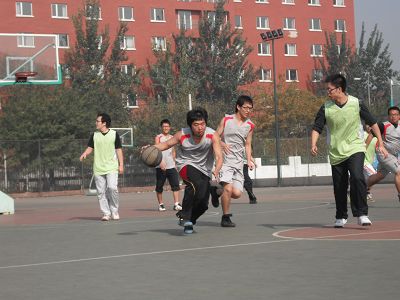 篮球联赛男篮比赛在篮球场拉开了帷幕。12点10分,随着主裁判的一声哨响,国产主播