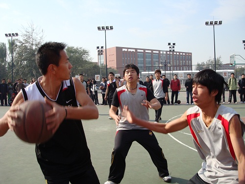2009年11月3日的中午的12:10,国经与刑司的巅峰对决开始了,国经一袭银色球衣,而刑司则是红白黑相间的队服。裁判发球,开场俩队各有优势,但刑司略优,第一节就展开强攻,节奏越来越快。但国经人没有受到影响,拉拉队击鼓呐喊,场上球员默契的配合,很快,一连几个三分,国经抢回了优势!尤其是球员张佶,三分准而且十分坚强,一连几次被撞倒在地都坚强的站了起来,马上进入了快速的比赛节奏,国经人就是这种精神,不屈不挠,勇往直前!  两队在最后一节的拼杀最为激烈,国经领先,刑司的球员们以其人高马大的前锋不断突围,但国经人的防守也不是那么脆弱的,双方的篮下争夺让场外所有人振奋,尖叫,欢呼!  这是体育的魅力,是所有运动员用汗水与伤痛换来的狂喜。终于,结束的哨声响起,国经以37比28,完胜刑司队。愿所有在赛场上拼搏的国经人忘记身上的伤,你们都是好样的!  |