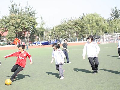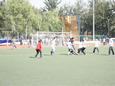 本次比赛,气氛热烈。场上,足球女将们英姿飒爽,尽情洋溢激情;场下,啦啦队员们热情高涨,不断呐喊助威。一时间,鼓声、喝彩声在法大运动场的上空交织成了一篇和谐的乐章。