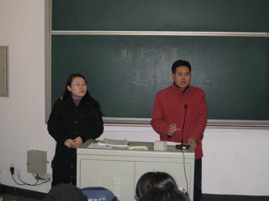 同时根据学校《学位授予规定》,大会向2008同学提出了对必修及选修、专业与非专业课程的成绩要求。激励同学们抓紧时间进行准备,力争在期末考试中取得好成绩,考出国经人的风采。