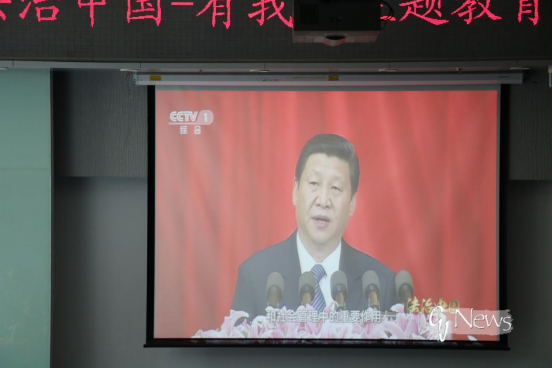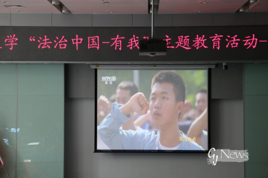 接下来,同学们观看了两集《法治中国》。《法治中国》是一部重大法治题材政论专题纪录片,以建设法治中国为主题,以党的十八大以来中央关于全面依法治国重大决策部署和重大成就为主线,充分反映了党中央推进全面依法治国的决心、智慧和成就。同学们在观看过程中不断称赞,不时凝思,观众席中不时爆发出热烈的掌声。