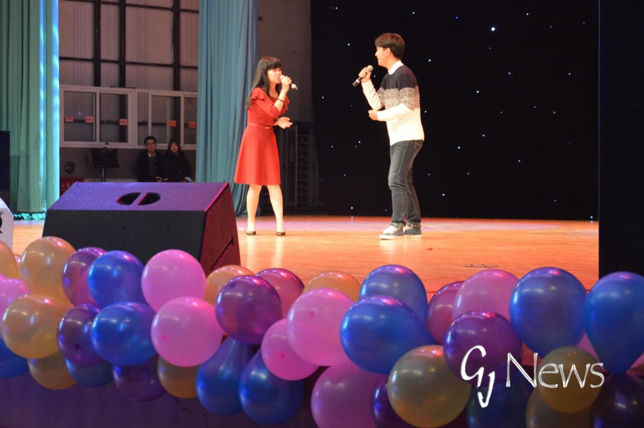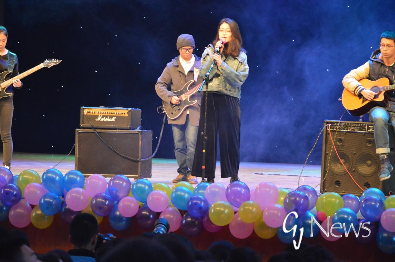 灯光微暗,吉他声起,在同学们期待的目光中,大赛以一首无边界乐团的《加州旅馆》拉开帷幕。曲罢,晚会主持人宣读了本次大赛的规则。本次比赛共分为三个环节,分别是大咖帮唱突围赛、冠亚资格赛和终极之战。较之以往,本次大赛不仅独出心裁地引入了“嘉宾帮唱”制,而且新增了歌手突围这一环节,使节目更具挑战性,更能激发观众的兴趣。