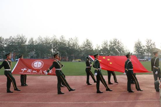 国旗方队伴着慷慨激昂的进行曲、踏着铿锵有力的整齐步伐走过主席台,开幕式由此拉开序幕。