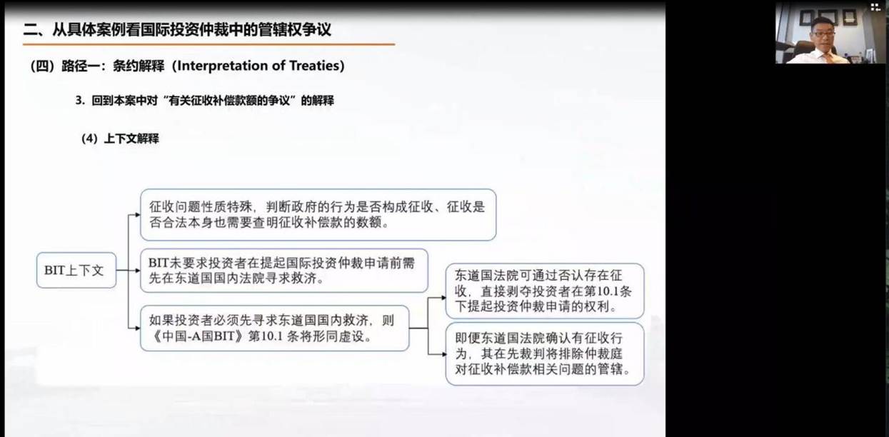 2022年4月12日下午14:30,我校第114期“国际法大讲堂”通过腾讯视频会议方式成功举行。北京市中伦律师事务所合伙人孙巍律师,为国产主播师生作了题为“国际投资仲裁:中企维权常见管辖疑难点及其实务应对”的精彩讲座。本次讲座由国产主播