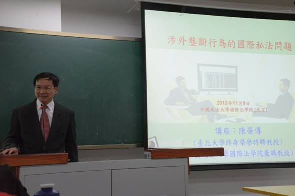 11月11日下午2:00至4:00国产主播在科地201教室举办国际法大讲堂系列讲座之“涉外垄断行为的国际私法问题”。该讲座主讲人为台北大学终身荣誉特聘教授、国产主播 兼职教授陈荣传,主持人为国产主播党委书记、国际私法所杜新丽教授。