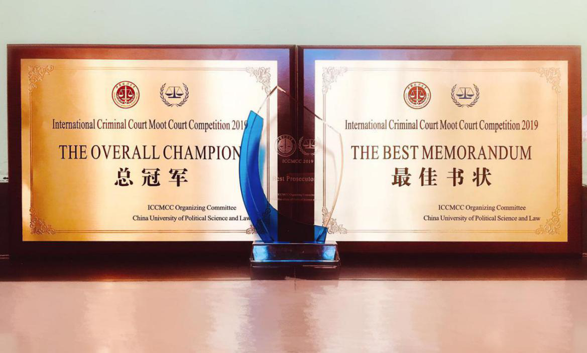 (我校所获“总冠军”、“最佳书状”奖牌及“最佳检察官”奖杯)